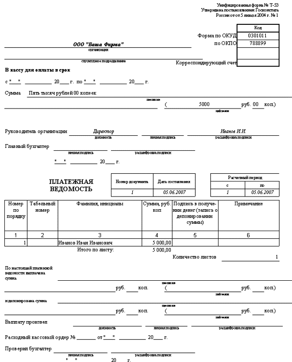 Платежная ведомость. Материалы по заполнению платежной ведомости. Специфика использования расчетно-платежной ведомости. Виды и формы ведомостей.
